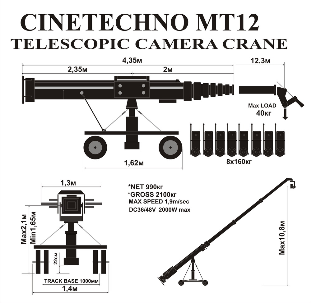 Телескопические операторские краны предназначены для расширения изобразительных возможностей за счет свободного перемещения съемочной камеры в пространстве по трем координатам. Это позволяет создать динамическую перспективу недостижимую никакими другими средствами, а также, получить необычные при классических методах съемок ракурсы. При съемках постановочных планов (кино и телевизионные картины, клипы, реклама) использование операторского крана позволяет значительно снизить производственные расходы в съемочном периоде за счет возможности съемки более длинными планами (при разработке глубокой мизансцены), а также за счет возможности быстрой перестройки камеры на последующие планы.